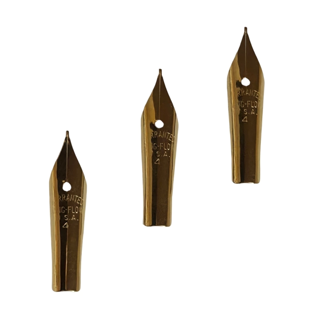 Seu formato e o tamanho universal n° 4 garantem o encaixe em uma VASTA GAMA de canetas-tinteiro, proporcionando uma escrita muito macia e suave, correspondente a traços fino para médio (F-M). Também temos a N° 6, que é uma pena ligeiramente mais larga nos ombros, mesmo comprimento, e com a ponta menos fina!