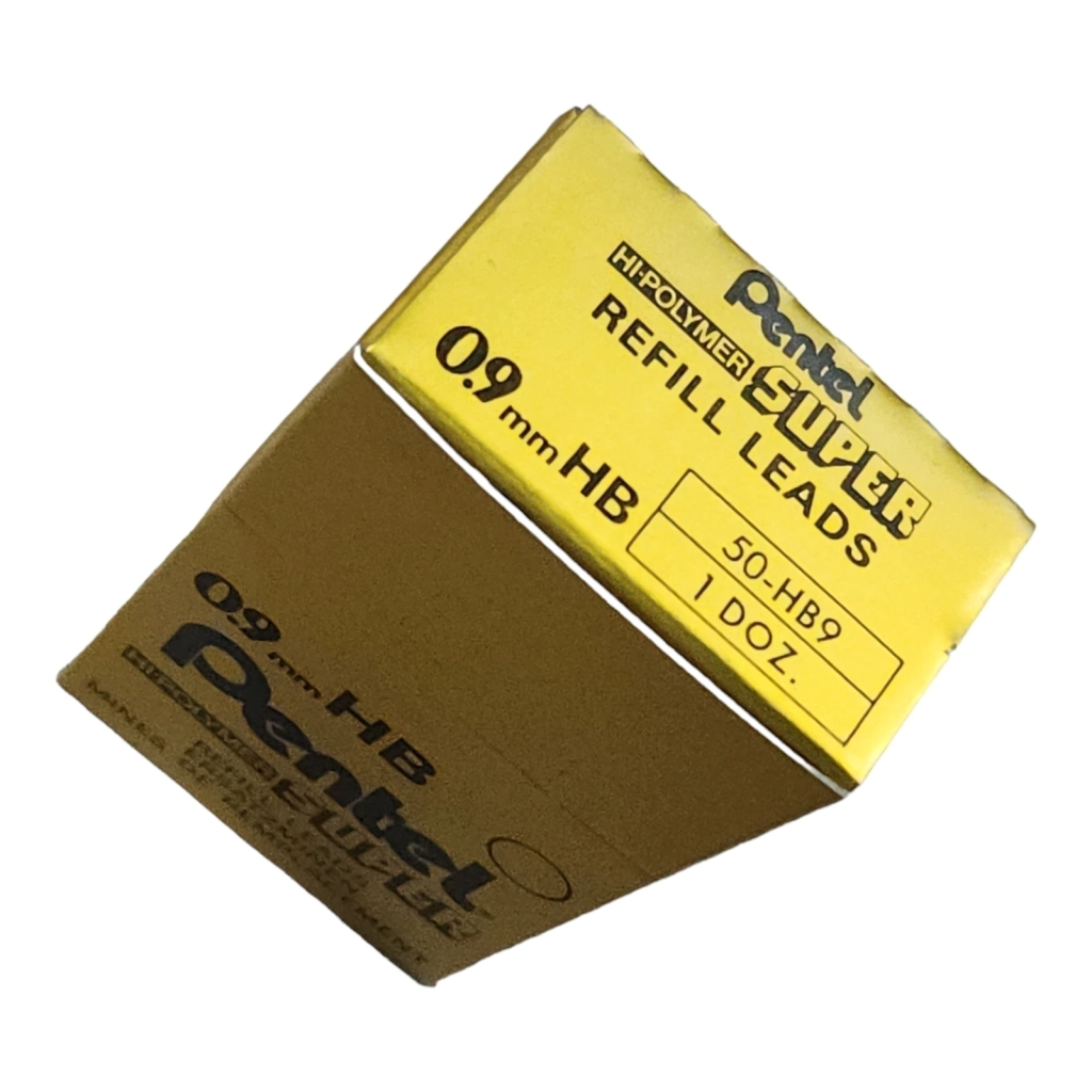 Caixa de papelão com 12 tubos de grafite original Pentel 0,9mm - HB.